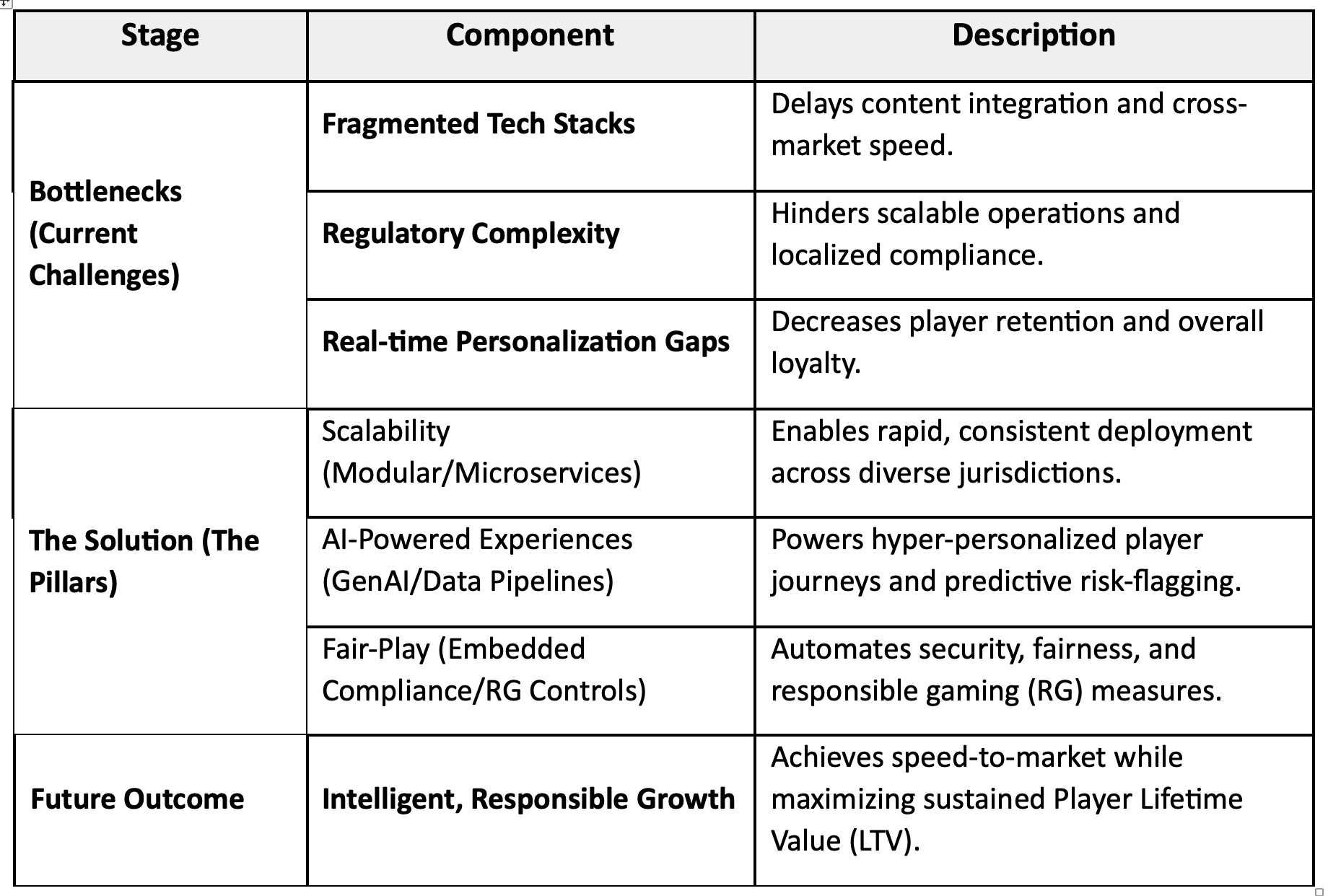 Next-generation gaming platforms are solving today’s challenges by fusing automation, compliance, and creativity. Unified frameworks, cloud-native game engines, and AI-assisted design environments are reducing time-to-market while enhancing quality and consistency. Through GenAI-powered ideation and testing, developers are now able to streamline game creation from art and theme conceptualization to logic coding, cutting development cycles significantly while improving player satisfaction. In essence, technology isn’t just supporting the iGaming business. it’s shaping its very DNA.